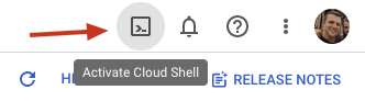 1. Navigate to the Dashboard and ensure your new project selected in the top drop-down. Then, in the top right hand corner of the screen, click the Activate Cloud Shell icon